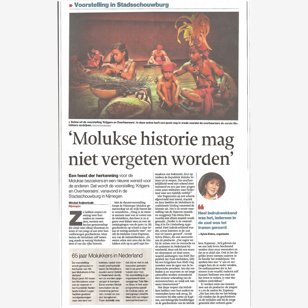 Tala Mena Siwa is nu meer en meer bewust bezig om onze cultuur en identiteit door te geven. Deze doorbraak is niet alleen bedoeld voor onze eigen kring maar ook voor onze regio en landelijk. Met onze 2e theatervoorstelling brengen we dit in de praktijk en staan we open om met andere Molukkers verbinding te maken.